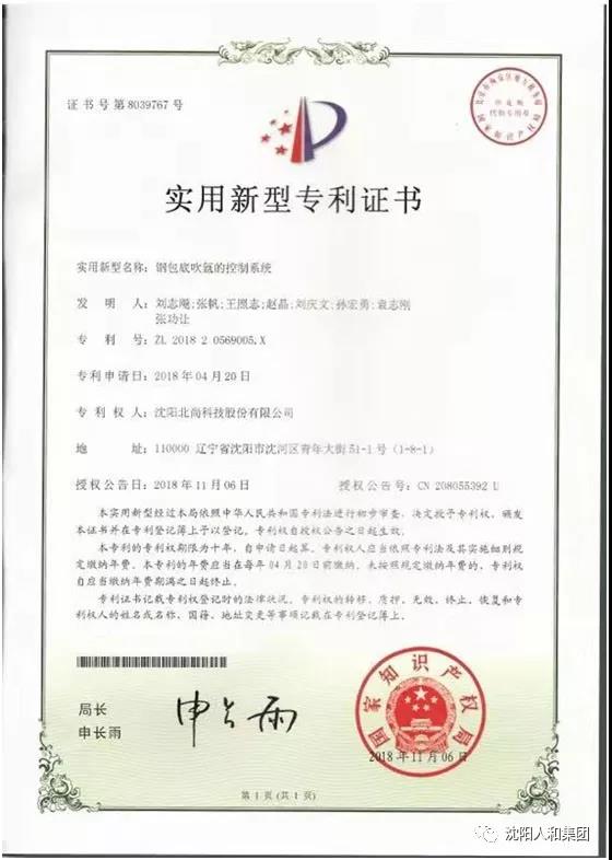 我公司自主研發(fā)的“鋼包吹氬的控制系統(tǒng)”和“一種具有剛性防護(hù)罩的吹氬裝置”兩項技術(shù),喜獲國家知識產(chǎn)權(quán)局頒發(fā)的專利證書。